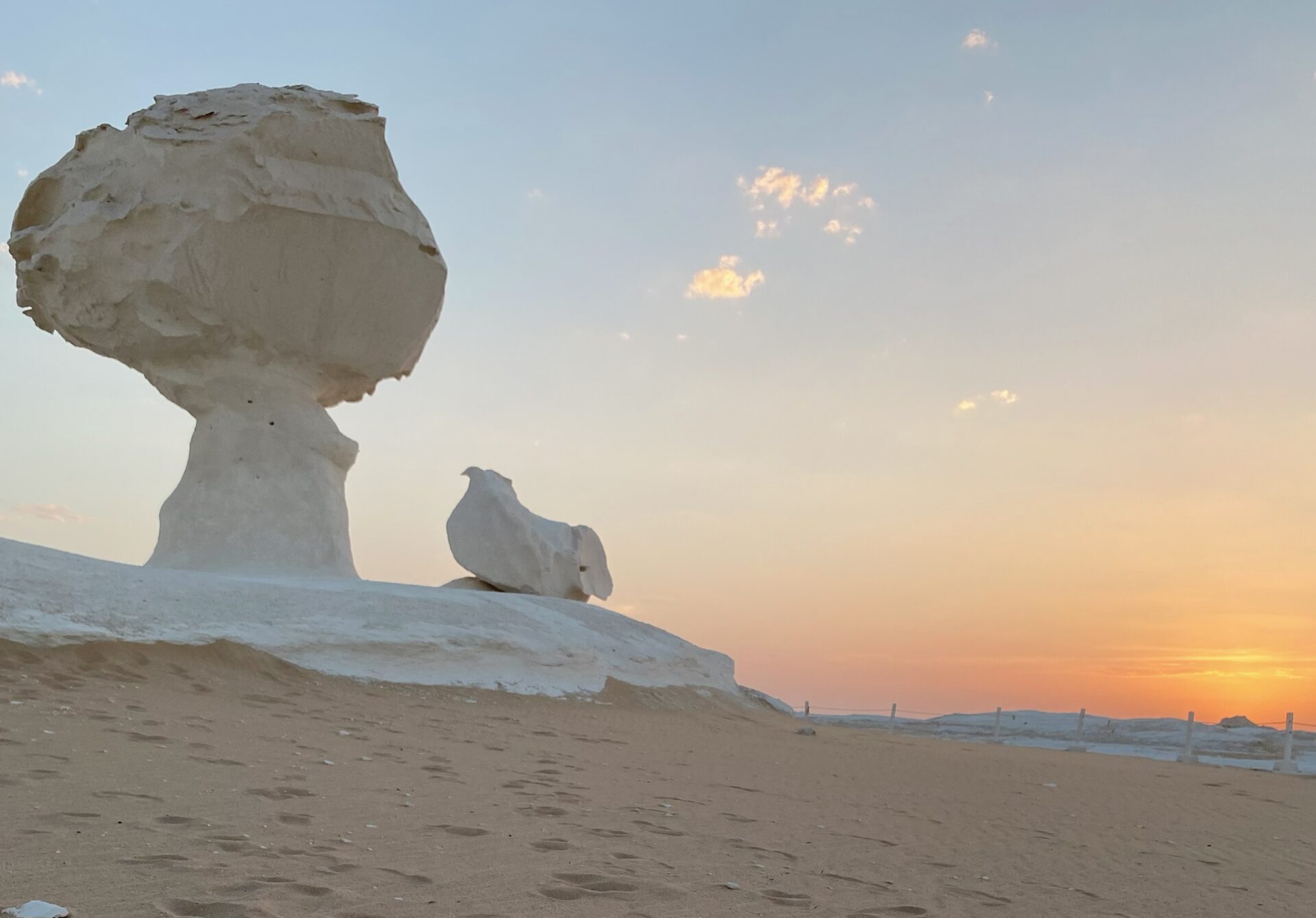 Nesta viagem, irá explorar os contrastes marcantes do Deserto Branco, famoso pelas suas surreais formações rochosas de giz branco moldadas pelo vento e pela erosão, lembrando esculturas gigantes numa paisagem de outro mundo. Também se aventurará no Deserto Negro, conhecido pelas suas espetaculares colinas vulcânicas negras que criam um contraste nítido e misterioso com as areias circundantes. Ao longo do caminho, descubra a deslumbrante Crystal Mountain, um arco natural de brilhantes formações de cristal de quartzo, onde pode desfrutar de vistas deslumbrantes.